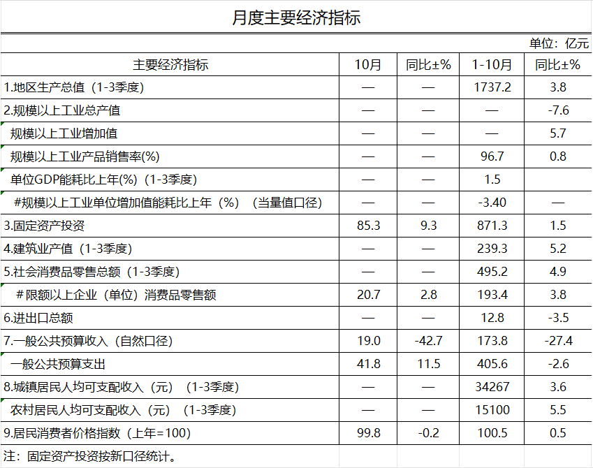 2025年10月长治市主要经济指标