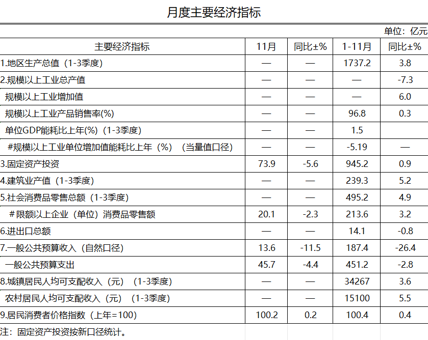 2025年11月长治市主要经济指标